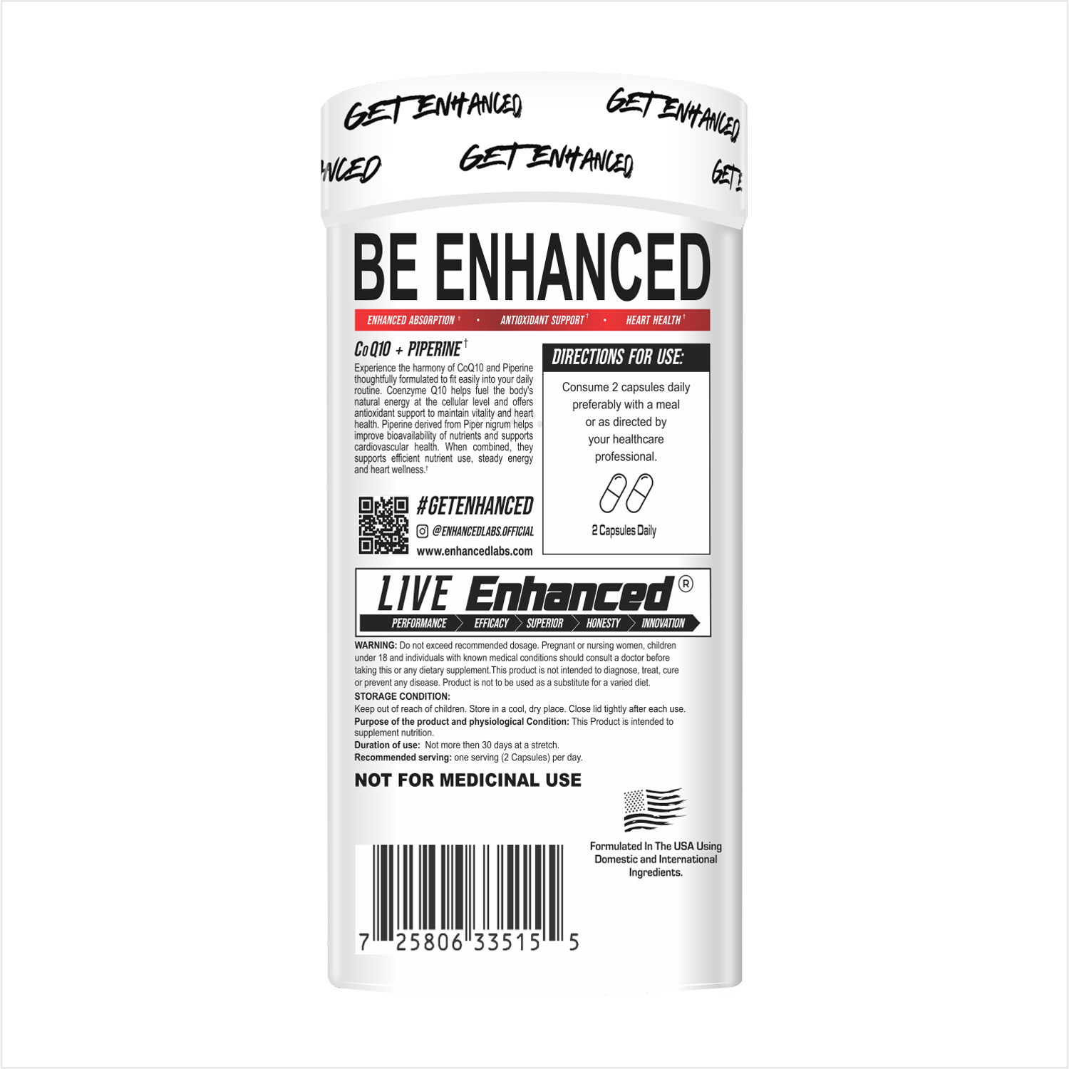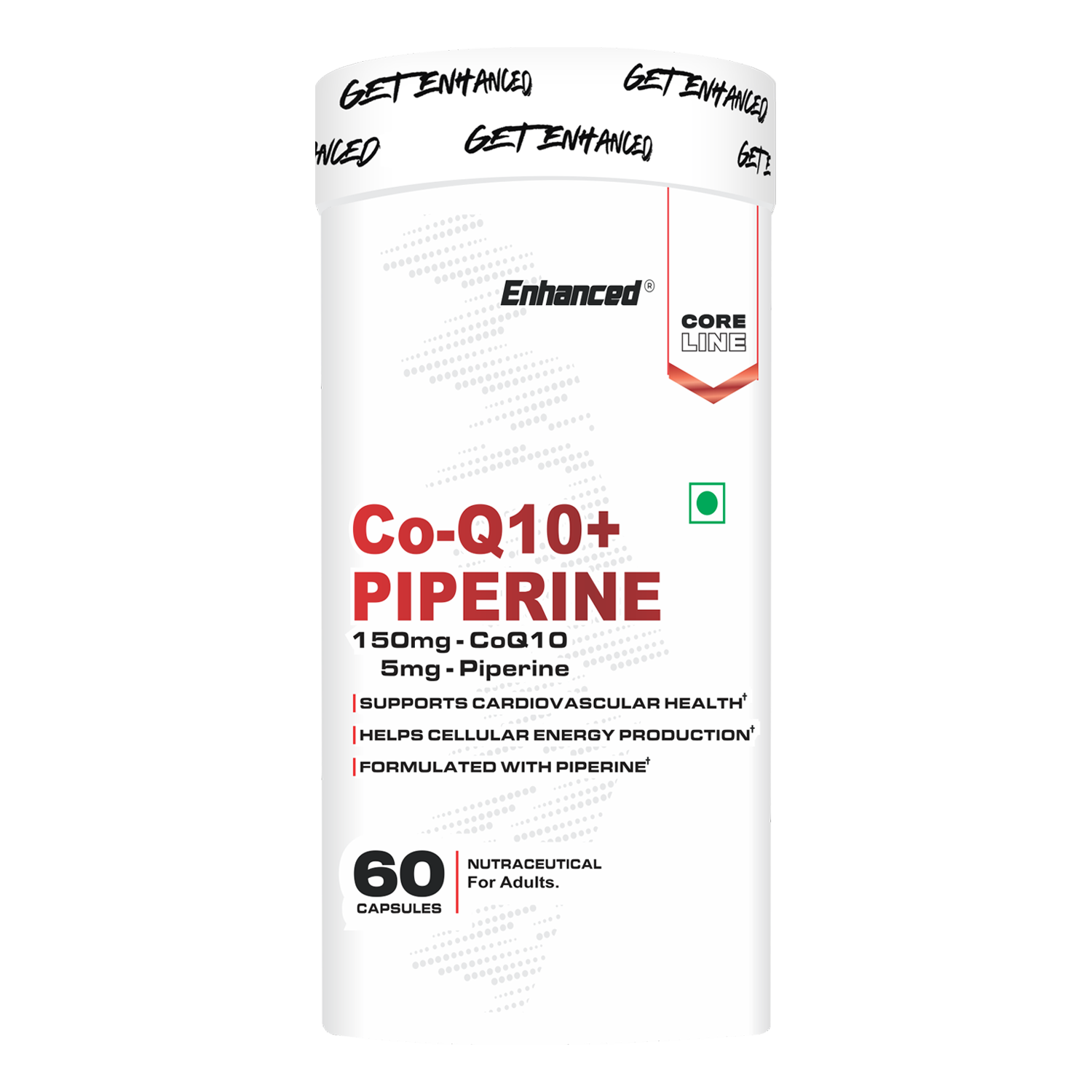 Enhanced Co-Q10 delivers 150 mg of Coenzyme Q10 combined with Piperine to support better absorption and utilization. Designed to support cardiovascular health and cellular energy production, this formula helps your body perform efficiently at a cellular level.